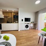 A szobák egy teraszra nyílnak, valamint rendelkeznek íróasztallal, kávé/teafőzővel és síkképernyős műholdas TV-vel. 1 hálószobából, teljesen felszerelt konyhából, illetve 1 fürdőszobából áll. A fürdőszobákban van: külön WC és zuhanyzó.
